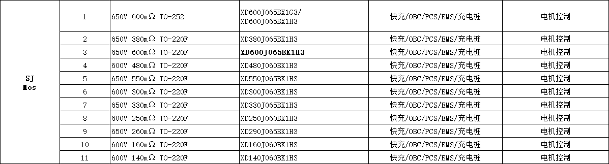 XD600J065BK1H3 芯達茂 SJ Mos 650V 600mΩ TO-220F 快充/OBC/PCS/BMS/充電樁
