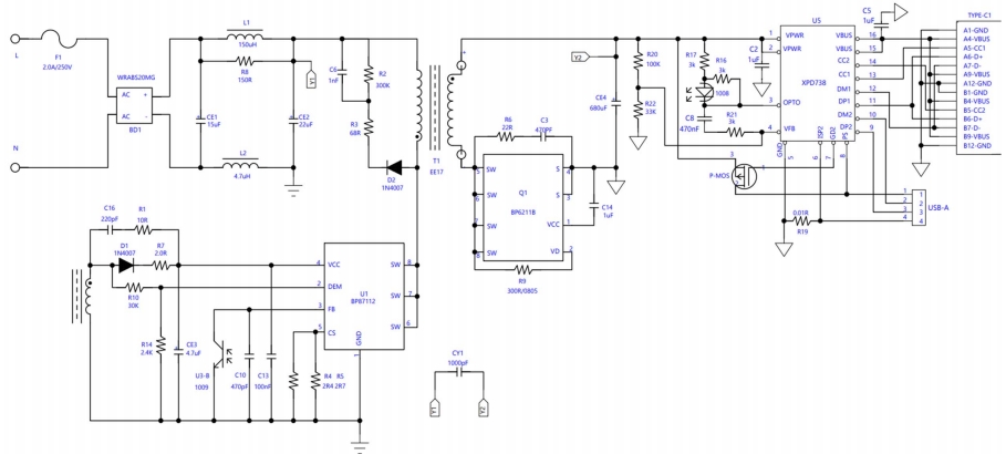 在當(dāng)今快速發(fā)展的電子設(shè)備市場中,電源適配器的性能和效率對于設(shè)備的穩(wěn)定運(yùn)行至關(guān)重要。隨著USB-C接口和USB-PD協(xié)議的廣泛應(yīng)用,市場對高性能、高效率的電源適配器的需求日益增加。本文將詳細(xì)介紹基于BP87112和BP6211B芯片的20W A+C電源適配器參考設(shè)計(jì),該設(shè)計(jì)支持12V/1.67A、9V/2.22A和5V/3A的輸出規(guī)格,旨在為用戶提供一個(gè)高效、可靠的電源解決方案。