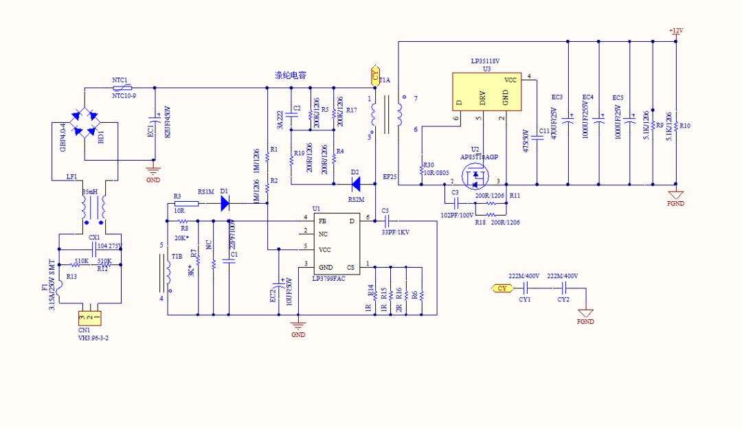 不論大小電子設(shè)備,電源管理模塊是核心組件之一,它直接影響到設(shè)備的性能和可靠性。LP3799FAC型號(hào)12V4A電源方案,以其集成MOS管、小體積、大功率輸出的特點(diǎn),為48W電源設(shè)計(jì)提供了一個(gè)高效的解決方案。本文將詳細(xì)介紹該電源方案的原理圖、PCB板設(shè)計(jì)以及樣板實(shí)物圖BOM清單等。