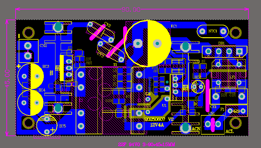 布局設(shè)計(jì):電源管理IC位于PCB板的中心位置,以最短的路徑連接到關(guān)鍵的外圍元件,如變壓器和輸出電容。這種布局有助于減少功率損耗和提高效率。