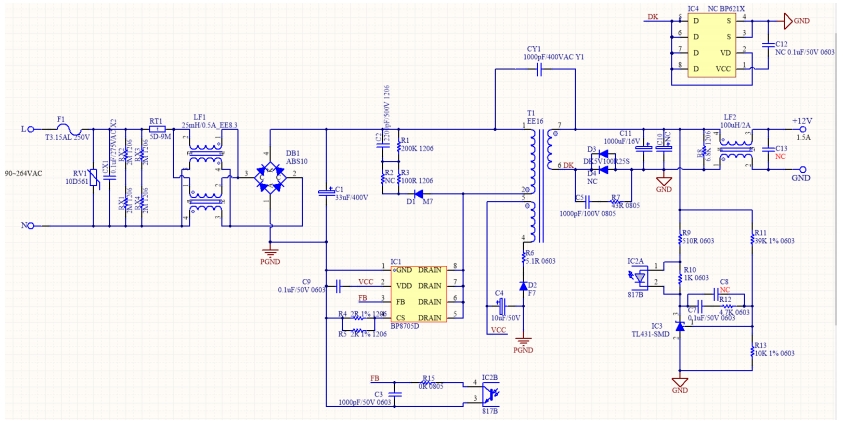 在現(xiàn)代電子設(shè)備中,穩(wěn)定的電源供應(yīng)是確保設(shè)備正常運(yùn)行的關(guān)鍵因素之一。BP8705D作為一款高性能的電源管理芯片,以其高效、穩(wěn)定的特性在眾多電源方案中脫穎而出。本文將詳細(xì)解析基于BP8705D的12V/1.5A電源方案,涵蓋電路原理圖、實(shí)物圖、變壓器規(guī)格以及PCB設(shè)計(jì)等內(nèi)容,幫助讀者全面了解該方案的設(shè)計(jì)細(xì)節(jié)和優(yōu)勢(shì)。
