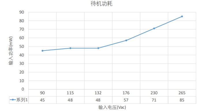 在230VAC輸入條件下,待機(jī)功耗僅為73mW,滿足低功耗設(shè)計(jì)要求。