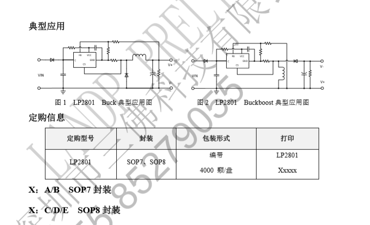 LP2801A非隔離電源芯片,輸出電壓可調,電流100MA,封裝:SOP7