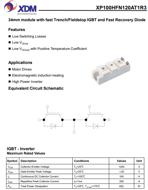 芯達茂XP100HFN120AT1R3 國產IGBT 功率模塊 100A 1200V