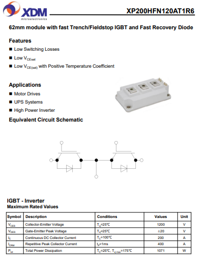 XP200HFN120AT1R6 芯達茂 國產IGBT 功率模塊 200A 1200V 62mm