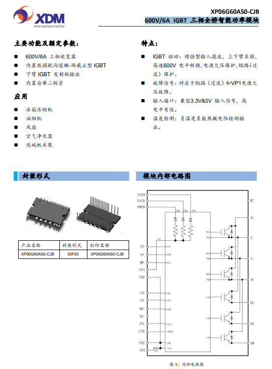 XP06G60AS0-CJPL 芯達(dá)茂 國(guó)產(chǎn)IGBT 三相全橋智能功率模塊
